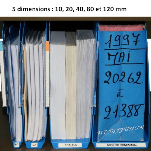 🔹 Grande capacité : plusieurs largeurs disponibles (20, 40, 80 ou 120 mm) pour accueillir jusqu’aux dossiers les plus volumineux.