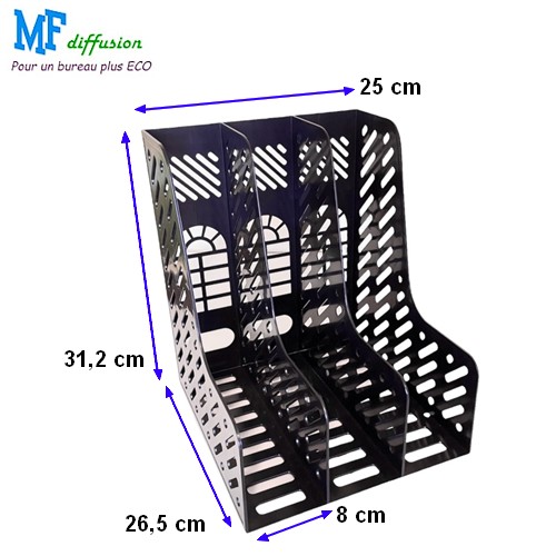 Ce module de classement à 3 compartiments pour ranger bureaux et documents peut être placé seul ou associé à un ou plusieurs porte-revues, selon la taille à remplir. Les documents et les dossiers sont soignés, il est facile de trouver les informations dont vous avez besoin, le produit est léger matière en polypropylène.