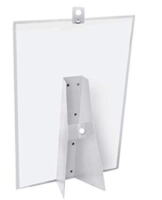 Présentoir se pose comme un chevalet ou se fixe sur un mur.