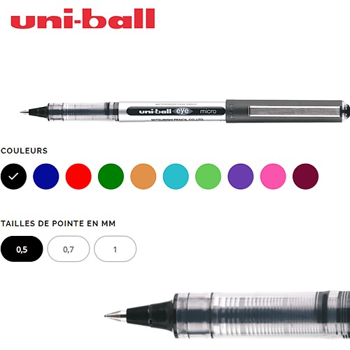 🖊️ Stylo Roller Uni-Ball EYE Pointe Aiguille – Écriture Fluide, Encre Infalsifiable et Couleurs Intenses